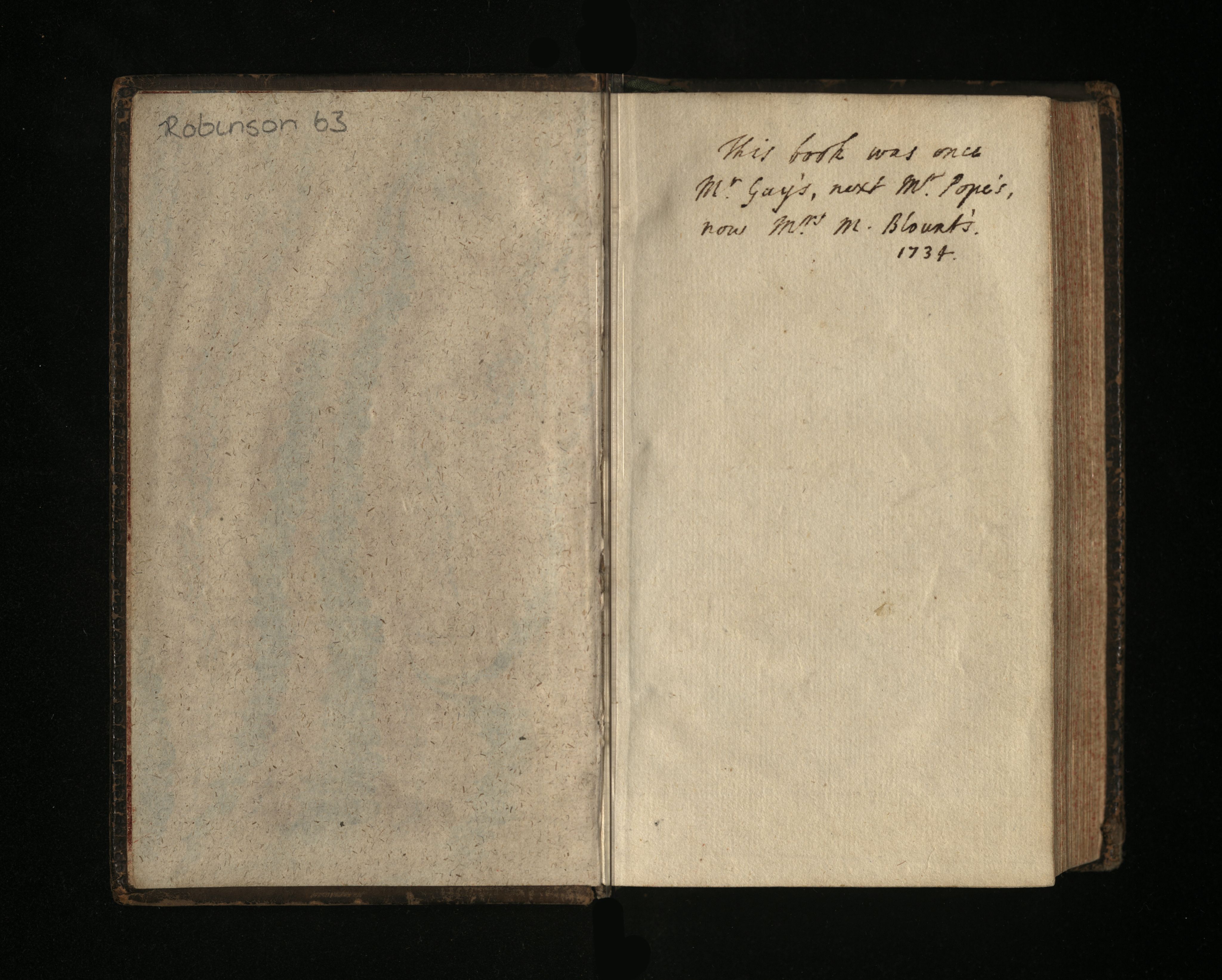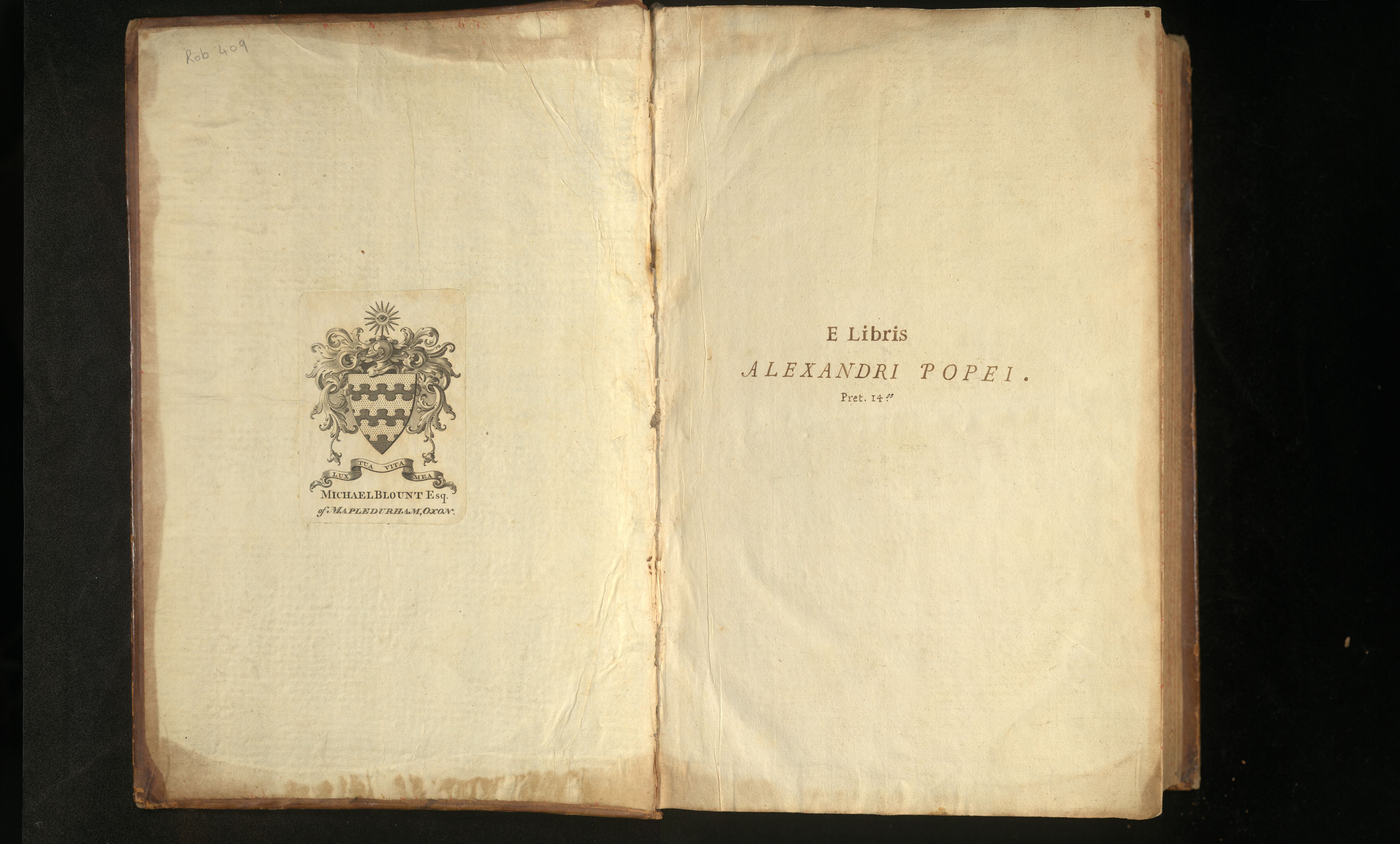 In his will, Pope bequeathed 60 books from his library to his friend and life-long companion Martha Blount. After her death in 1763, these books were inherited by her nephew, Michael Blount. He moved them to the family home, Mapledurham House in Oxfordshire. In 1952, the antiquarian book-dealers Lionel and Philip Robinson purchased a large part of the Mapledurham library to sell to their customers. Some of the books were kept back for their personal collections and were later donated to Newcastle University’s library (renamed in honour of Philip Robinson in 1989).