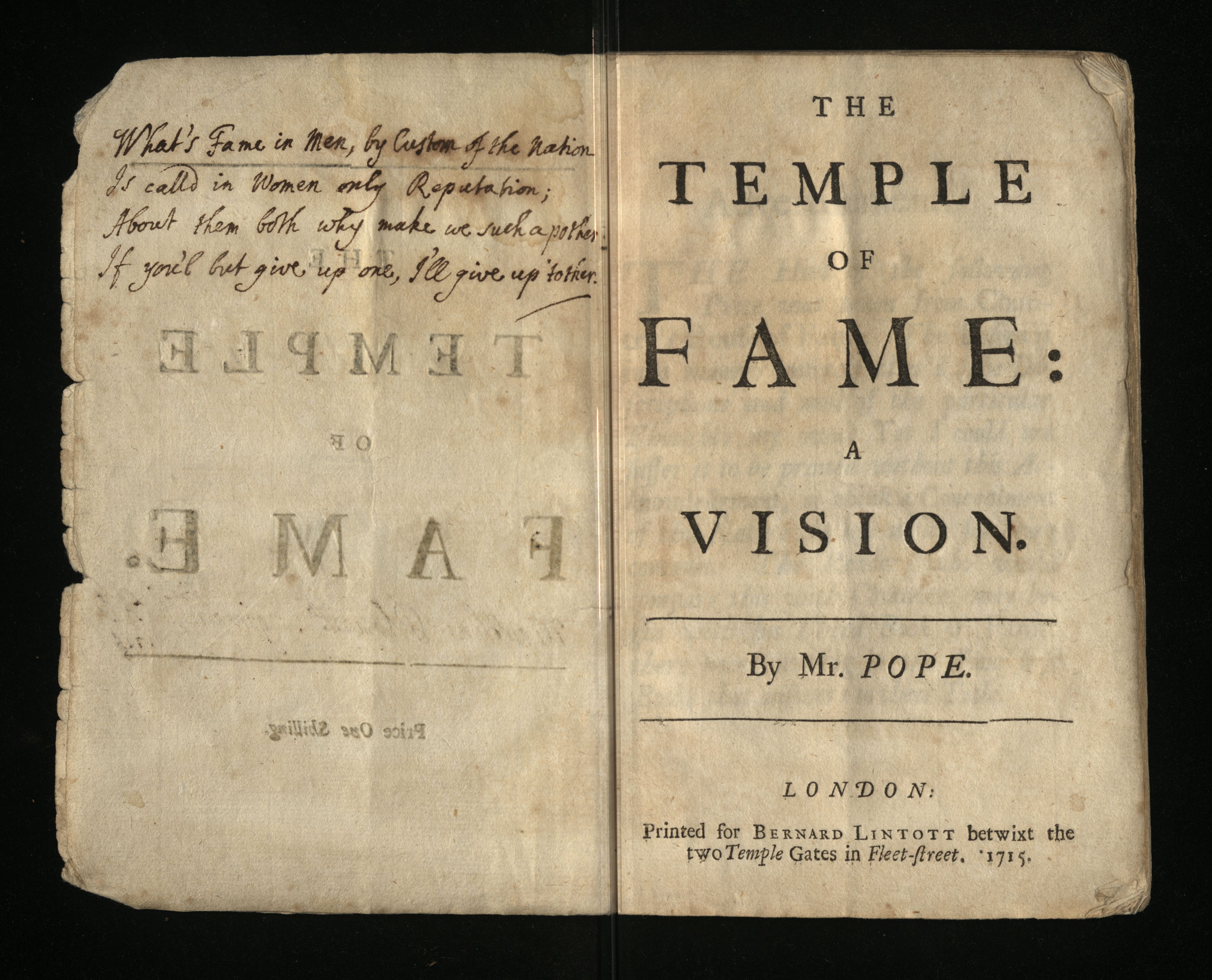 Pope, A. The temple of fame: a vision (1715), Rob. 60, Robinson (Marjorie and Philip) Collection.