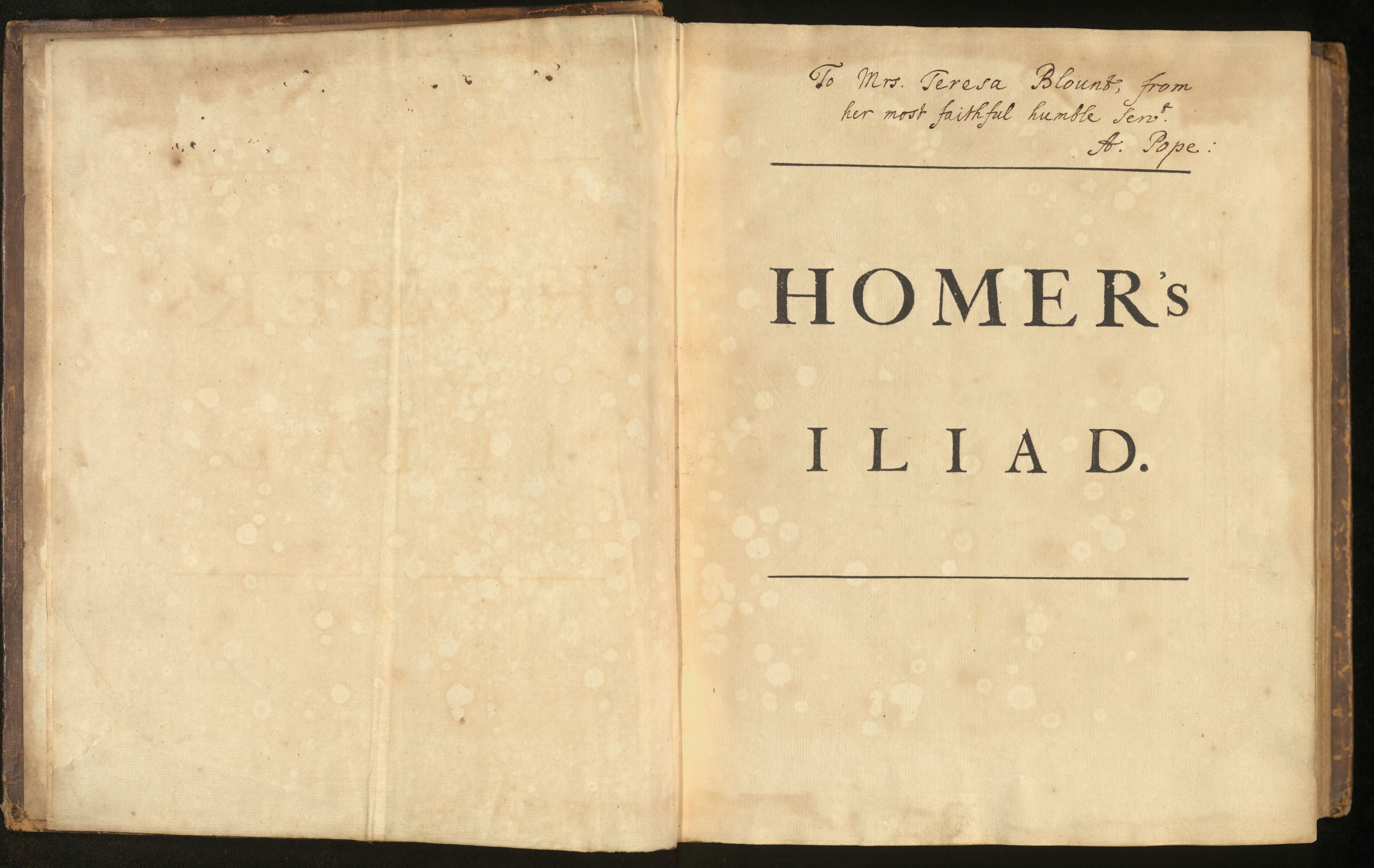 Homer. The Iliad of Homer, vol. 1, translated by Alexander Pope (1715–20), Rob. 70, Robinson (Marjorie and Philip) Collection.