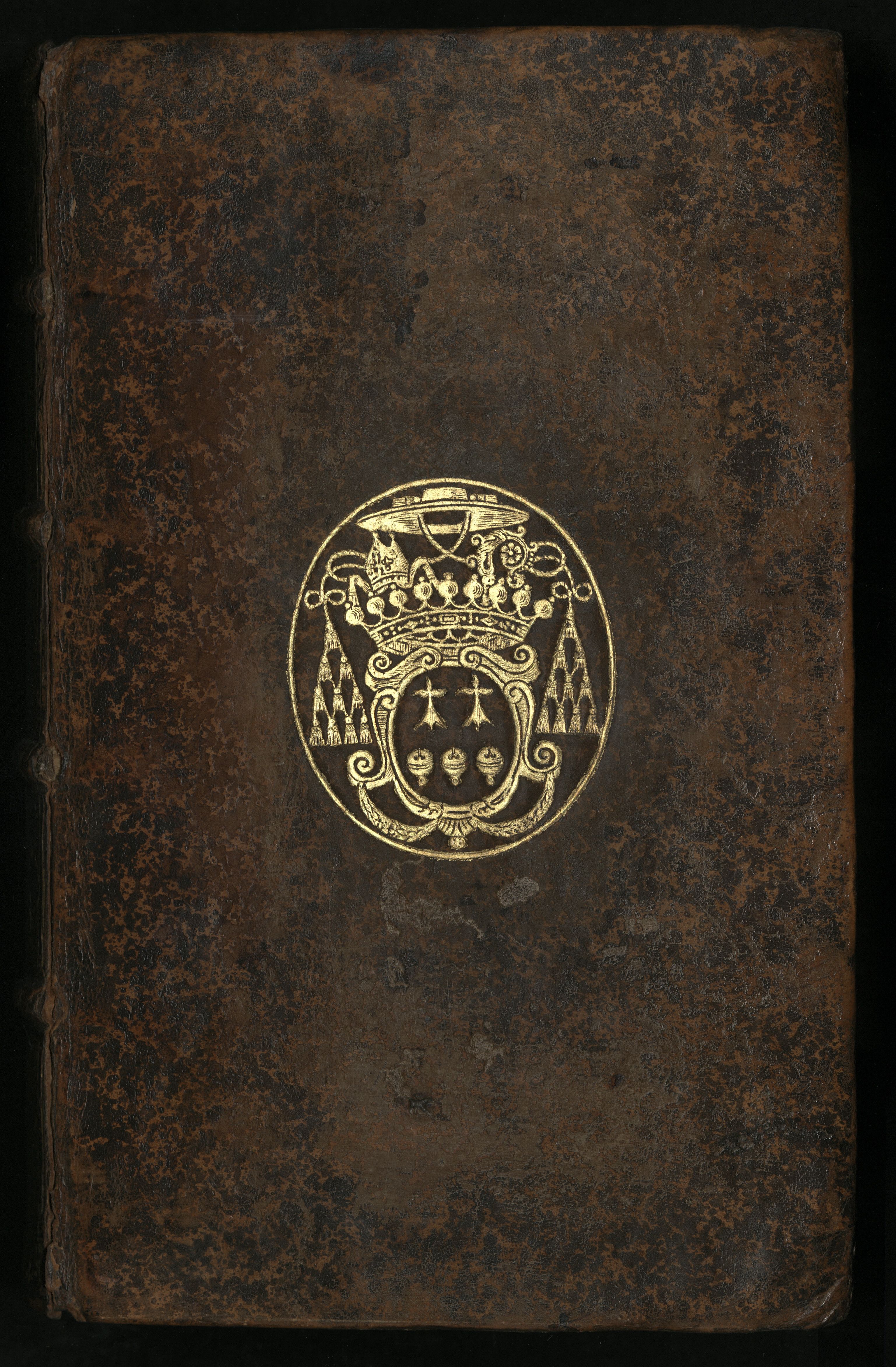 The binding on this book is decorated on the front and back boards with the ornate coat of arms of Walter Chetwynd (1633–1693). Chetwynd became Member of Parliament for Stafford in 1674 but lost his seat at the next election. His interests spanned many subjects: numismatics (the study of currency); literature; theology; mathematics; natural history; history; and antiquities. The book was previously part of library stock thought to have been kept in a former Librarian’s room before becoming part of the Bradshaw Collection.